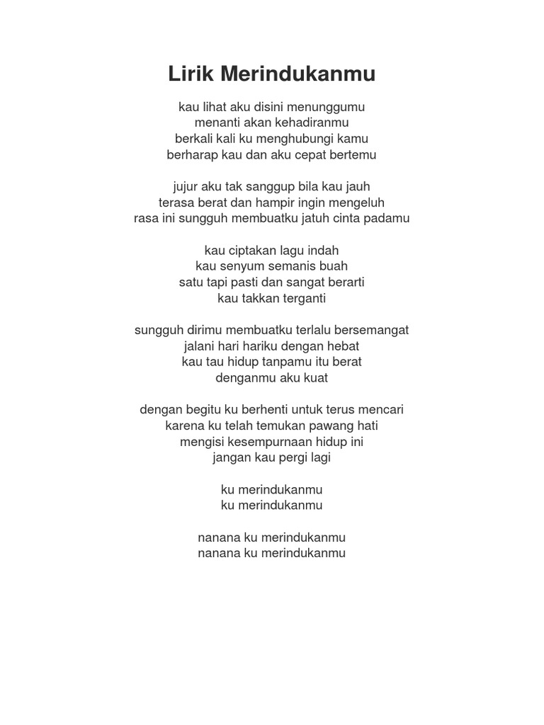 Letra De La Cancion Merindukanmu Dash Uciha